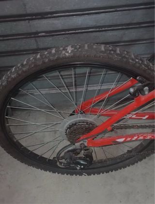 Bicicleta B-PRO de 24 pulgadas en color rojo. - 18 velocidades para adaptarse a diferentes terrenos. - Diseño deportivo y llamativo. - Necesita cambiar la cámara de la rueda delantera y quitar el óxido de la cadena