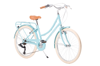 Bicicleta de paseo retro Capri Carolina de 24 pulgadas. Un estilo clásico para disfrutar de tus trayectos. - Cuadro de estilo vintage color turquesa. - Sillín en semipiel de estilo clásico y puños de goma en el mismo color. - Cesta de mimbre incluida. - Guardabarros delantero y trasero. - Portabultos trasero (NO INCLUIDO) Recomendada para altura entre 1,30 y 1,55 m