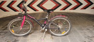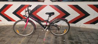 Bicicleta de decathlon en color negro y rosa. - Ruedas de 24 pulgadas. - Frenos delanteros y traseros. - Sillín ajustable. - Casco de regalo