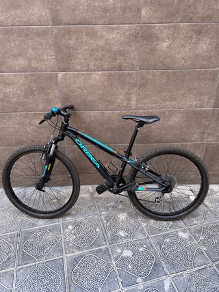 Bicicleta infantil Rockrider 500 de 24 pulgadas, ideal para iniciarse en el mundo del ciclismo de montaña. FUNCIONA PERFECTAMENTE RUEDA DE ATRAS SIN AIRE (Pago en efectivo) - Cuadro de aluminio. - Suspensión delantera. - Frenos V-brake. - Cambio de marchas.