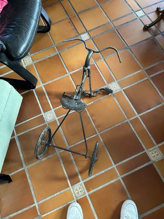 Triciclo vintage de hierro, ideal para coleccionistas o proyectos de restauración. Estructura original de hierro Estilo antiguo auténtico (principios/mediados del siglo XX aprox.) Perfecto para decoración industrial, escaparates o casas con encanto ⚠️ Le falta la rueda delantera (de ahí su precio)