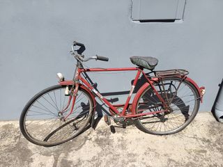 Bicicleta antigua de la marca Orbea, ideal para restaurar o usar como pieza decorativa. Es de color rojo y se encuentra en buen estado general, aunque muestra señales de uso. - Marca: Orbea - Freno de varilla - Color rojo