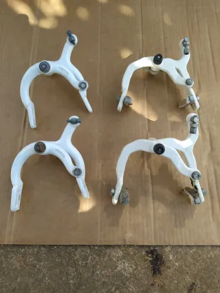 Conjunto de frenos para bicicleta BMX de estilo antiguo. Son de color blanco. Olimpic Balón y BH...20 euros cada juego...bmx.mtb,trial, bmx antigua, bmx vintage... - Diseño clásico de BMX.