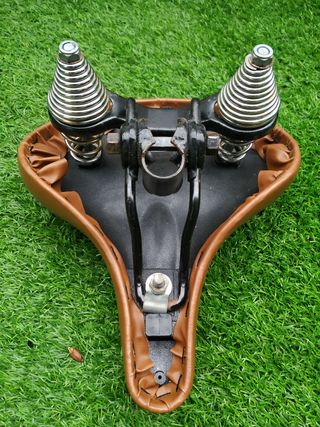 Sillín de muelles bicicleta paseo clásica. Ideal restauración bicicleta antigua. Incluye soporte para tija. - Material: Cuero - Marca: WOLBER