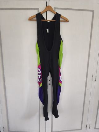 Se vende culotte de ciclismo de la marca OF3. Talla L. 80% poliamida y 20% elastan. Pantalón / culote usado antiguo, vintage, ideal para concentraciones y carreras clasicas. Está en Donostia/ San Sebastián.