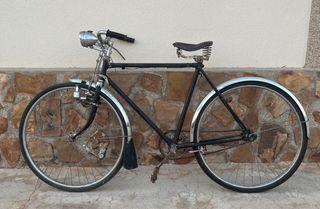 Bicicleta Orbea Deba 35 de estilo antiguo, ideal para proyectos de restauración y decoración. - Cuadro de color plateado. - Guardabarros delantero y trasero. - Portaequipajes trasero. - Faro delantero. - Pata de cabra.