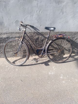 Bicicleta clásica de estilo vintage, con un diseño que evoca épocas pasadas. - Cuadro de metal con acabado oxidado. - Sillín de cuero desgastado. - Ruedas de radios. - Guardabarros delantero y trasero. Escucho ofertas