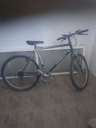 Bicicleta de montaña en buen estado, aunque algo antigua. Ideal para restaurar o usar como bici de ciudad. - Modelo de montaña. - Color gris y naranja. - Algunas señales de uso. Tiene los manillares gastados, el cuadro de la cadena está separado de la bici y el sillin esta suelto. Para arreglarla habría que cambiarle el soporte de la cadena. Los frenos y las ruedas están bien. Simplemente la vendo por si alguien le puede dar otra vida ya sea usando la ruedas, los frenos o el manillar o si quiere arreglarla y quedarsela.