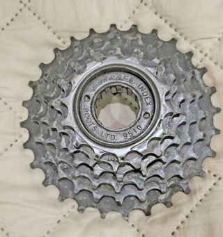 Cassette de 6 velocidades para bicicleta de la marca SunRACE. - Modelo: ROOTS LTD. 9510 - Modelo antigüo, rescada. Piñon Libre Rosca 14x28 - Compatible con sistemas INDEX.