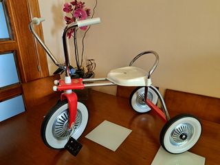 Vendo triciclo antiguo de los años 60. Está nuevo sin signos de uso ya que no ha salido nunca de casa. Como se puede observar en las fotos, no tiene óxido ni roces ni golpes. Tiene la pegatina original de la casa Coloma. Todo un clásico del que quedan pocas unidades en éste estado. Entrega en mano para ver en persona el estado. Precio: 229€. Compradores serios.