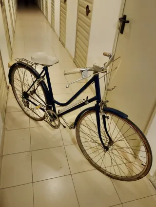 Bicicleta antigua, vintage. La estructura está en buen estado, pero las ruedas necesitan una actualización. Tiene más de 25 años aunque apenas se ha usado. Tiene el enganche para la cesta en el manillar, pero no la conservo (la cesta). Bicicleta color azul 💙 Nota importante: NO SE ENVÍA. A recoger por el comprador en Valladolid.