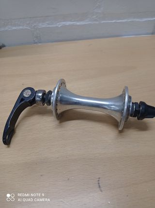 Buje delantero de bicicleta antiguo, en buen estado ya que es nuevo sin usar. Ideal para restaurar una bicicleta clásica o montarte tu rueda con 36 radios. - Material: Aluminio. - Incluye cierre rápido. - Pieza en buen estado de conservación.