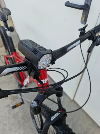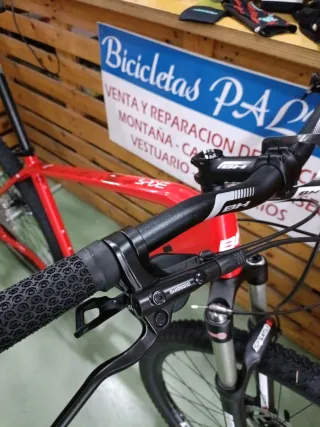 Bicicleta de montaña BH SPIKE 2.5 en color roja TALLA S/M 3 meses de uso con factura y garantia Con algun adicional importante, luces delanteras y traseras, camaras antipinchazos 3mm Spike Aluminio 29" Horquilla SR Suntour XCM RLR Remote Lock 100mm Cambio Shimano Deore 5120 10v Mandos Cambio Shimano Deore 4100 10v Bielas Shimano M5100 30T 175mm Cassette Shimano Deore M4100 Frenos Shimano MT200 180mm Ruedas BH