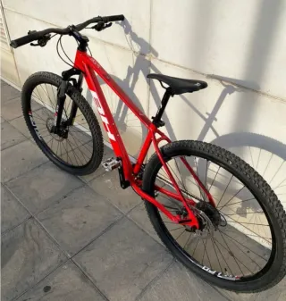 Bicicleta de montaña BH Spike 1.0 en color rojo talla M. Trae pedales de calas (usados 3 veces), los pedales normales, unos guantes, cámara de repuesto (la bici la tengo desde octubre 2024 y nunca ha pinchado), inflador, kit anti pinchazos sin usar, 3 desmontadores, un culotte talla M y maillot mangas cortas talla M. Todos los productos estan a 65€. La bici está a 280€ - Cuadro de aluminio. - Ruedas de 29 pulgadas. - Frenos de disco Shimano MT-200. - Suspensión delantera.