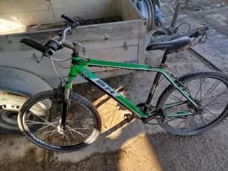 Bicicleta de montaña BH con cuadro de color verde y detalles en blanco. - Cuadro de aluminio. - Ruedas de 26 pulgadas. - Suspensión delantera. Para darle un repaso engrasar la cadena y poner a punto solo le falta el soporte del cambio trasero no negociable