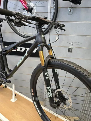 Talla L. BICICLETA LIQUIDACIÓN. Bicicleta montaña 29 pulgadas, cuadro de carbono, transmisión shimano Deore XT, plato de 32, 12V, horquilla Fox 34 step-cast con bloqueo al manillar. Más información 9242055 60