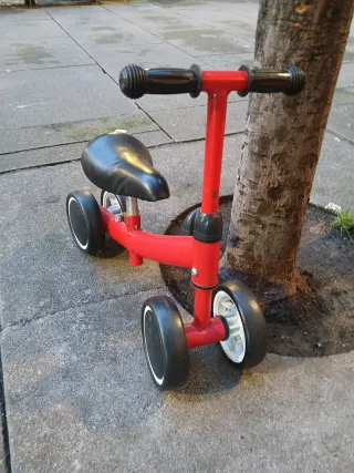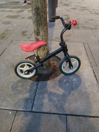 Bicicleta de aprendizaje para niños pequeños, ideal para iniciarse en el mundo de las dos ruedas. - Color: asiento rojo, estructura negra. - Ruedas pequeñas para mayor estabilidad. - Manillar con puños para un agarre seguro. SOMOS UN PROYECTO DE INSERCIÓN LABORAL, donde encontraras un taller, venta de material y bicicletas de segunda mano a tu medida. Pásate a conocernos en la Plaza MORAZA No 5 Bilbao -Bizkaia- o visítanos en bizieskola. net. RECOGEMOS TODO TIPO DE BICICLETAS. ¡¡¡ No es tu bici!!! Escribe Bizieskola en el buscador de Wallapop y encontraras lo que estás buscando. BH, ORBEA, CONOR, SCOTT, KONA