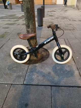 Bicicleta de aprendizaje B'TWIN, ideal para iniciarse en el mundo de las dos ruedas. Su diseño ligero y manejable facilita el equilibrio. - Color negro. - Sillín marrón. - Ruedas blancas. SOMOS UN PROYECTO DE INSERCIÓN LABORAL, donde encontraras un taller, venta de material y bicicletas de segunda mano a tu medida. Pásate a conocernos en la Plaza MORAZA No 5 Bilbao -Bizkaia- o visítanos en bizieskola. net. RECOGEMOS TODO TIPO DE BICICLETAS. ¡¡¡ No es tu bici!!! Escribe Bizieskola en el buscador de Wallapop y encontraras lo que estás buscando. BH, ORBEA, CONOR, SCOTT, KONA