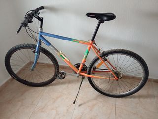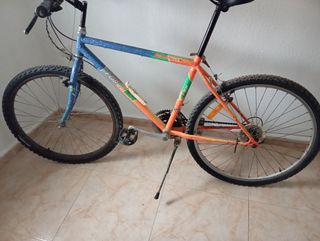 Bicicleta de montaña BH Over en color naranja y negro. Ideal para disfrutar de rutas y senderos. Revisada y lista para su uso. - Cuadro de aluminio. - Horquilla delantera con suspensión. - Frenos de disco. - Cambio Shimano. - Ruedas de 26 pulgadas.
