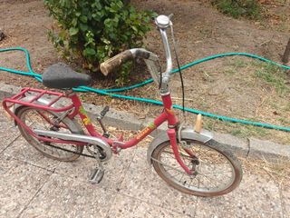Bicicleta plegable de la marca BH en color rojo. Ideal para paseos y fácil de transportar.Esta es una bicicleta plegable vintage, BH Gacela de los años 70. Con signos de uso y antigüedad. - Cuadro de acero. - Ruedas de 20 pulgadas. - Sillín ajustable. - Guardabarros delantero y trasero. - Portabultos trasero.