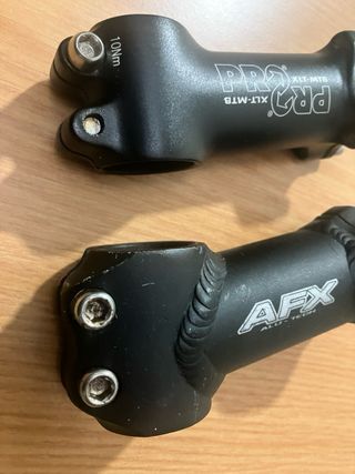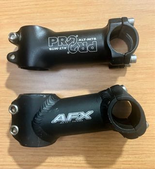 Se venden dos potencias de bicicleta, una marca PRO XLT-MTB y otra marca AFX ALU-TECH. Ambas son de color negro. - Potencia PRO XLT-MTB. - Potencia AFX ALU-TECH. Las dos por 5€ MTB GT Orbea GIANT BH ciudad cicloturismo ciudad
