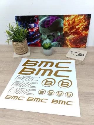 Lote de pegatinas con el logo de BMC en color dorado. - Variedad de diseños y tamaños. - Ideales para personalizar tu bici. Mas pegatinas en mi perfil Solo envíos!!!