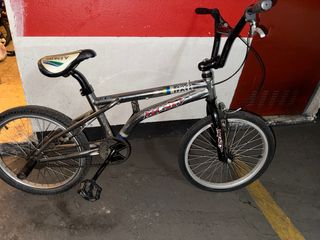 Bicicleta BMX en color plateado con detalles en verde. Las ruedas son de 20 pulgadas. - Cuadro plateado. - Ruedas de 20 pulgadas. - Puños verdes. + Información al privado , el Precio está rebajado por algunas partes de desgaste como cubiertas y puños y asiento . Por poco dinero esta como nueva