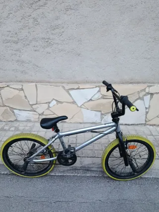 bicicleta BMX en perfecto estado, usada muy pocas veces. Ideal para hacer trucos y aprender BMX. • Ruedas de 20 pulgadas con neumáticos en buen estado. • Manillar con rotor (gyro) para giros 360o sin que se enreden los cables, perfecto para trucos de freestyle. • Frenos funcionales. • Transmisión monoplato con protector de cadena. La bici está prácticamente nueva, sin apenas uso. Se vende porque no le damos uso.