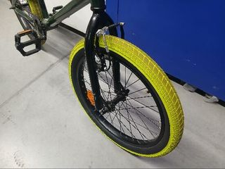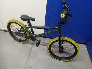 Bicicleta BMX de 20 pulgadas con un diseño llamativo. - Ruedas con aro verde. - Frenos de disco. -Rotor para manillar 360° Se vende por falta de Uso. Apenas se ha usado y ha estado guardada en trastero para no sufrir daños por el temporal y el sol. Precio 120€