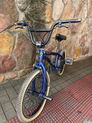 Bicicleta BMX GT en buen estado, lista para usar. - Color azul y blanco. - Ruedas de 20 pulgadas. - Manillar GT. - Sillín GT.