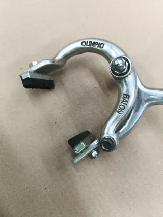 Puente de freno trasero para bicicleta marca Olimpic Balon. Para bici de trial o BMX. BH california, meteor, Orbea campeón, torrot Arizona, gac akimoto ... - Diseño clásico y robusto. - Material metálico plateado. - Incluye zapatas de freno.