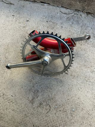 Juego de bielas y plato para pequeña bicicleta. Incluye una biela y un plato con sus respectivos tornillos, usado con sus roces y heridas de guerra, pero perfectamente funcional. Medidas en las fotos. Palabras clave/ vintage/antigua/BMX/ California/X2/X3/X4/X5/sky/monty/florida/ weinman/bicicross/motoretta/torrot/ mongoose/Panther/Derbi/rabassa/x/2/x/3/XL4/ star/Orbea/BH/G.A.C/montesita/sky/mag/ trickstyle/kuwahara/Peugeot/skayway/ akimoto/crosseta/AKM4/old/school/notario/ Ambrosio/Hi-tech/aeroyal/ Son piezas recuperadas pueden tener más defectos que no se vean.