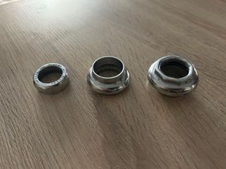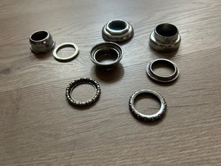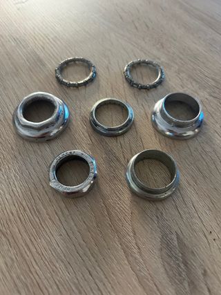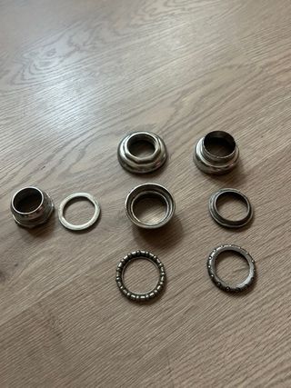 Juego de cazoletas de dirección de bicicleta BH, validas X2/3/4/5, usadas con sus roces puntos de óxido y heridas de guerra pero perfectamente funcional y con cromo y sus roscas bien. Palabras clave/ vintage/antigua/BMX/California/X2/X3/X4/sky/monty/florida/weinman/bicicross/motoretta/torrot/mongoose/Panther/Derbi/rabassa/xl2/xl3/XL4/star/Orbea/BH/G.A.C/montesita/sky/mag/trickstyle/kuwahara/Peugeot/skayway/akimoto/crosseta/AKM4/old/school/notario/Ambrosio/Hi-tech/aerorollal/bianchi Son piezas recuperadas de bicicletas clasicas o antiguas, pueden tener más defectos que no se vean.