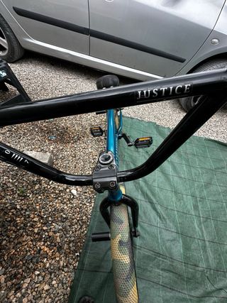 Es la BMX que usaba hace años. Tiene algunos golpes y rasponazos porque es lo que tiene este deporte, si fallas te caes. Su precio nueva recuerdo que eran más de 500€. Es una Wethepeople Justice del año 2010. Con el tiempo cambie el manillar y las bielas por unas de mejor calidad.
