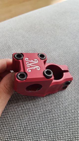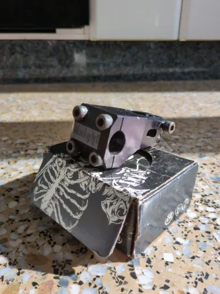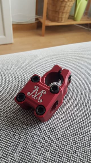Potencia BMX Madera, modelo MAST 36 mm de avance. Aluminio mecanizado, 260gramos de peso Tiene pequeños rasguños de uso pero está perfecta.