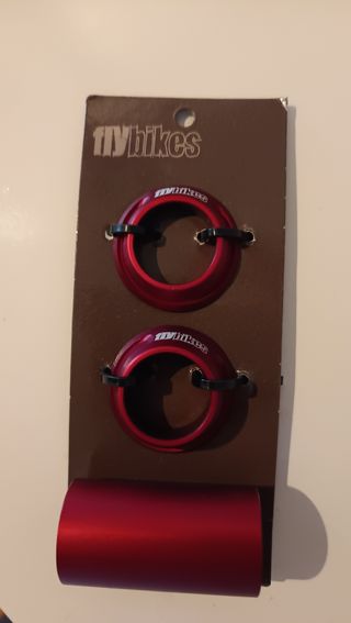 Juego de tapas de rodamientos Flybikes para bicicleta BMX, color rojo. Están nuevos a estrenar. También disponibles en color blanco, para bielas con eje de 22mm. - Marca: Flybikes - Color: Rojo - Material: Aluminio