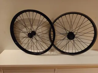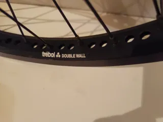 Par de llantas negras para BMX marca Trébol de flybikes, 36 radios, aros de doble pared, eje delantero de 10mm, eje trasero de 14mm, driver 9T eje hueco! Rodamientos sellados, están perfectamente centradas ya que tienen poco uso, sólo el aro trasero tiene la marca del freno.