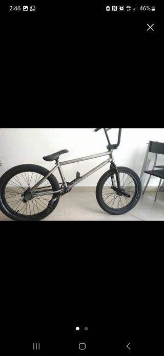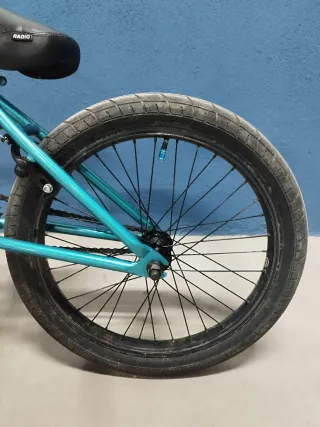 BMX Urbano Bike, me costó 275€. Un freno trasero de zapata, cuadro de acero, manillar con giro completo (gyro), estriberas traseras. Está un poco usada pero bien cuidada. La rueda delantera bien, la trasera tiene solo la cámara pinchada.