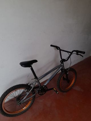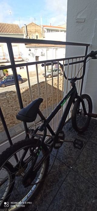 Bici estilo BMX Para niño/adolescente Ahora mismo está con las ruedas deshinchadas. También tengo los tubos reposapiés para hacer maniobras con la bici Tiene roces del uso de ahí su precio Pues verla sin compromiso Precio negociable Descuentos por lotes Entrega en mano en Cáceres Se hacen envíos