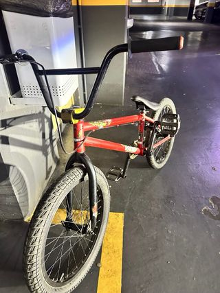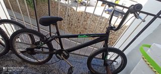 Bicicleta BMX de estilo urbano, ideal para trucos y paseos. La use 2 veces contada. Tiene el rotor para dar vueltas al manillar - Cuadro de color verde. - Horquilla delantera de color rojo. - Manillar negro. - Sillín negro con detalles plateados. - Ruedas de 20 pulgadas.