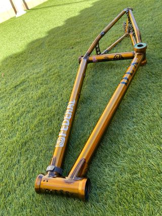 Es una wethepewople Justice 2016 la desmonte para pintarla y no la puedo usar ya, le faltan los frenos y la cadena el resto está desmontado pintado y sacado brillo,nose si las estriberas estarán sin pintar,se manda video sin problema y tendría que ir al trastero aver si está pintadas las estriberas se escuchan ofertas razonables y aceptaría cambio por algo de mi interés,se puede ver en Getafe sin compromiso Cuadro de bicicleta Bmx de la marca Wethepeople. Un diseño robusto y llamativo. - Color azul metálico. - Estructura de acero.
