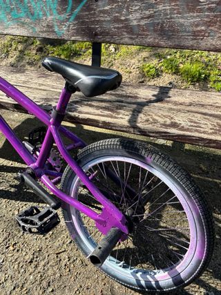 Bicicleta BMX Megamo Radikal en color morado, con un año de uso. Perfecta para disfrutar del ciclismo urbano y acrobático. - Cuadro de 20.3 pulgadas. -Ruedas de 20” -Cubierta de 1.90” y 2.10” -sin frenos, pero viene incluido los frenos en una bolsa por si quieren colocarlo.