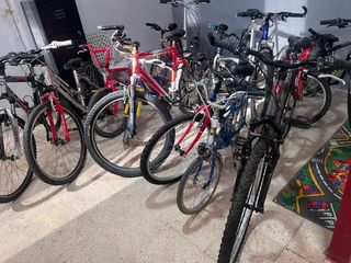 Variedad de bicicletas disponibles a buen precio. - Bicicleta de montaña roja con suspensión delantera. - Bicicleta BMX roja con barra alta. - Bicicleta de montaña blanca y azul. - Bicicleta de montaña negra con suspensión delantera. - Bicicleta de montaña gris con suspensión delantera. - Bicicleta de montaña negra. - Bicicleta de montaña roja. - Bicicleta de montaña azul. - Bicicleta de montaña roja y negra. Desde 45 €eros asta los 100€ o asta los 400 €