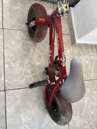 Bicicleta BMX profesional marca Dragonfly. Año 2003 Peso 11 kg más o menos - Cuadro de metal (actual rojo, original negro) - Rueda trasera con llanta original. - Sillín negro.