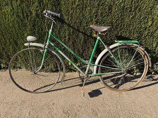 Antigua bicicleta de mujer. Pintada de color verde e incompleta. Francesa. El asiento es de cuero de la marca WELCOME, pedal derecho bastante antiguo con taco de madera. Se vende tal y como puede verse en las fotos. Buena base como proyecto de restauración o para decoración de un patio tal y como está. *orbea, bh, vasco belga, peugeot, cil, torrot, macario, zeus, razesa, Rabasa, akimoto, gac, orbea, torrot, colorado, arizona, cross, bmx, trial, bicicross, 80, montesita 70