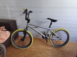 Bicicleta BMX en buen estado, apenas usada. - Color gris plata. - Llantas color verde lima. - Lista para usar. - Tengo los 4 tubos que van en las ruedas (Precio negociable)