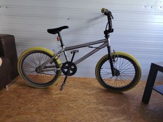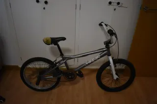 Bicicleta BMX de color plateado, lista para usar. - Cuadro de metal resistente. - Ruedas con llantas - Pedales negros.