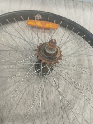 Rueda trasera de bmx de eje gordo de rosca de 14, para piñón roscado , de 48 radios, totalmente nueva nunca usada, sólo está un poco sucia, aro de aluminio