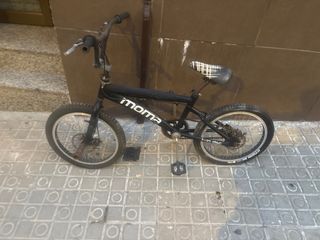 Bicicleta BMX Moma con doble freno de disco, ideal para proyectos de restauración. Su diseño robusto la hace perfecta para personalizar. - Cuadro de BMX. - Doble freno de disco. - Marca: Moma.