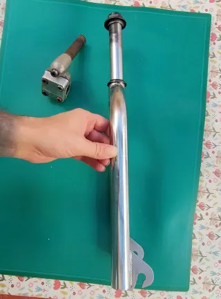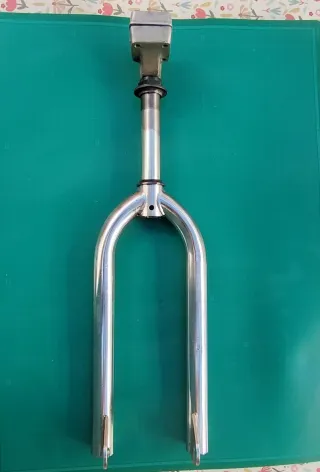 Conjunto de horquilla y potencia para bicicleta BMX clásica. - Procedencia de la marca MONTY. - Diseño cromado brillante. - Con marcas de uso - Incluyes las tuercas - Opción de canviar tornillos por inox. Véase las imágenes como parte de la descripción. -Precio conjunto 40€ -Por separado consultar Monty,BH,bmx